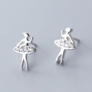 925 Sterling Silver Ballerina Dancer Rhinestone Stud Earrings
