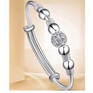 925 Sterling Similar Silver beads Bangle Bracelet, Hollow Charm Bracelet Bangle Bracelet