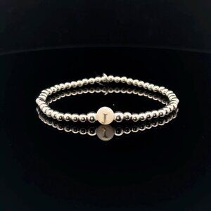 925 Sterling Silver Beaded Stretch Stacking Bracelet MOP Letter Initial J