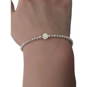 Material: 925 sterling silver 3mm beads, two 4mm Sterling Silver beads, Mother of Pearl Initial Letter and Rafanthia tag. Strong, durable, non toxic elastic.