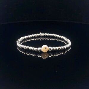 925 Sterling Silver Beaded Stretch Stacking Bracelet MOP Letter Initial Y