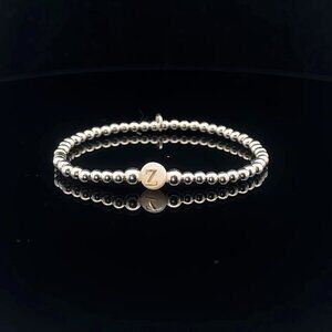 925 Sterling Silver Beaded Stretch Stacking Bracelet MOP Letter Initial Z