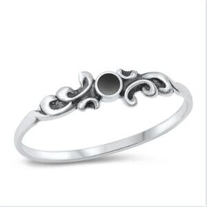 925 Sterling Silver Black Agate Filigree Ring w/ polishing cloth Size 9 NEW