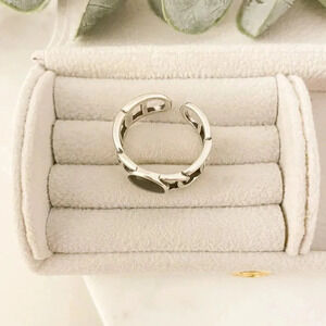925 Sterling Silver Black Circle Ring Curb Link Ring Chain Link Ring Modern Ring