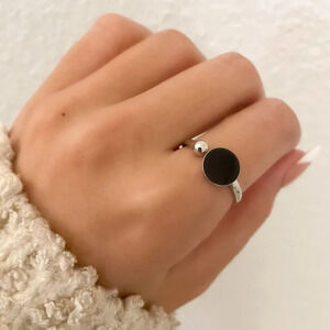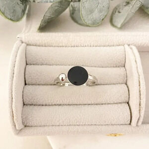 925 Sterling Silver Black Circle Ring Dainty Ring Geometric Minimalist Ring