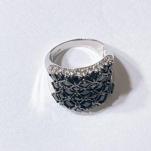 925 Sterling Silver Black Stones Grid Design Size 9