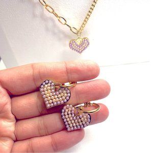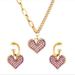 925 Sterling Silver Blue Crystal Heart Pendant Set