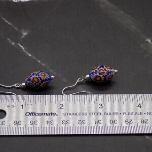 925 Sterling Silver Blue Glass Earrings Floral Beads Millefiori Style Signed FAS