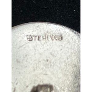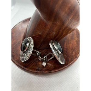 925 Sterling Silver & Blue Tigers Eye Large Circle MCM Abstract Cufflinks Vintag