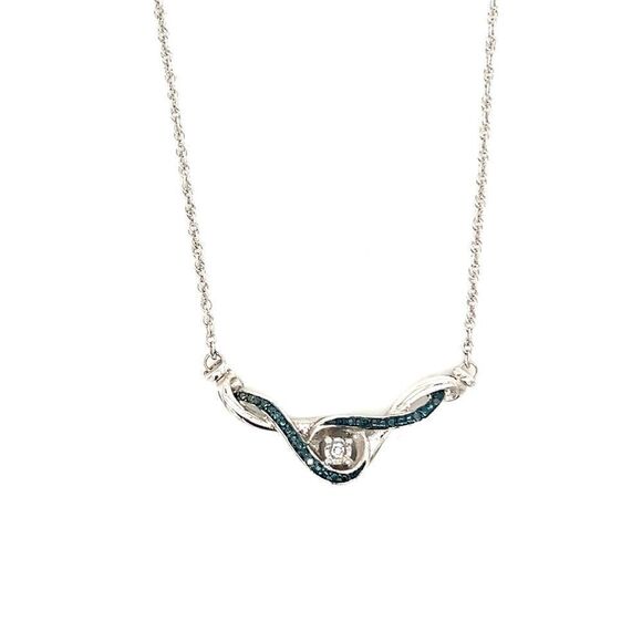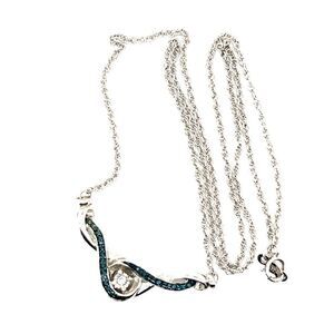925 Sterling Silver Blue and White Diamonds Necklace.