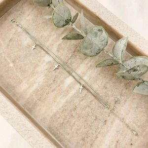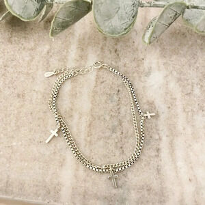 925 Sterling Silver Box Chain Bracelet Dangle Cross Bracelet Dainty Bracelet