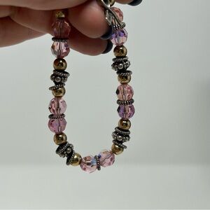 925 Sterling Silver Breast Cancer Survivor Ribbon Charm Pink Beaded Bracelet