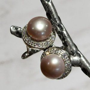 925 Sterling Silver Genuine Cultured Lavender Button Freshwater Pearl Leverback Earrings