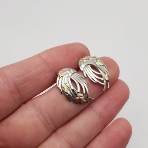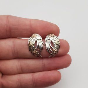 925 Sterling Silver CCO 12k Gold Leaf Accent Angel Wing Earrings