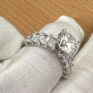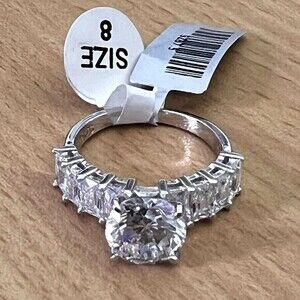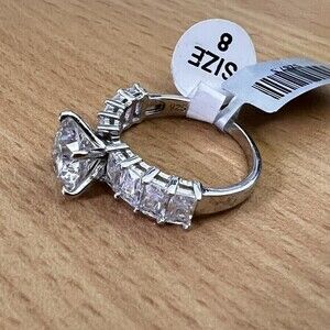 925 Sterling Silver | CZ Luxury Solitaire Ring Women's Size 8 Rhodium Finish.