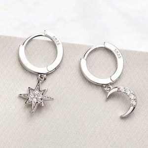 So trendy, chic, & fashionable. These minimalist mini hoop diamond star & moon earrings are simple yet adorable. Perfect for any outfit & as a gift!