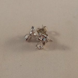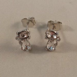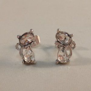 Beautiful chic design women's cat bow knot swirl tail zircon stud earrings 925 silver w/excellent cut grade sparkling clear white oval + pear, tear or water drop shape simulated diamond crystal zircon gemstones. Top quality, high polished shine, brand new, never been worn. Lead, nickel free. These earrings sparkle.