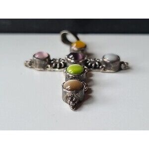 925 Sterling Silver Cat's Eye Cross Pendant Vintage Mexico