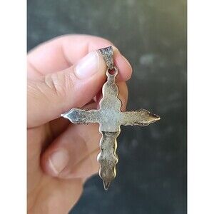 This is a vintage 925 sterling silver cat's eye cross pendant.