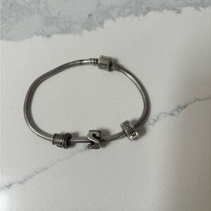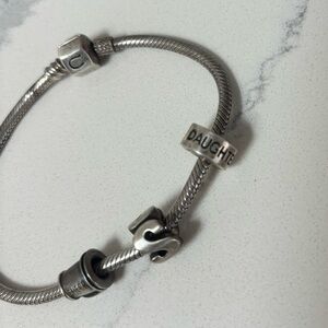 925 Sterling Silver Charm Bracelet with Cheer Charm, S Charm, Daughter Charm