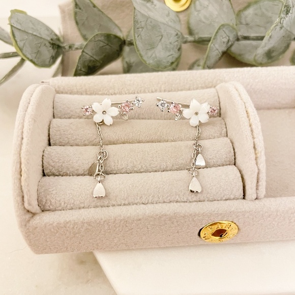 925 Sterling Silver Cherry Blossom Earrings Dangle Flower Petal Drop Earrings
