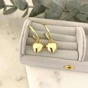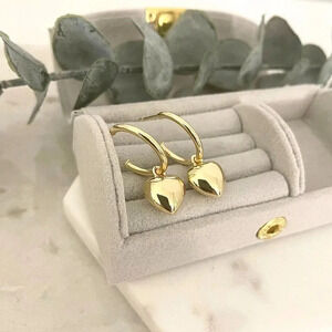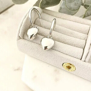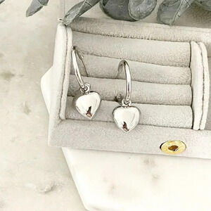 925 Sterling Silver Chunky Heart Hoop Earrings Dangle Heart Huggies