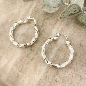 ♥ Beautiful Sterling Silver Twist Chunky Hoop Earrings