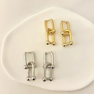 925 Sterling Silver Chunky U Link Earrings Thick Bold Hardware Earrings