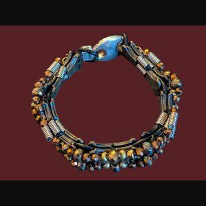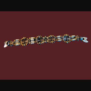925 Sterling Silver Clasp Artisan Made Beaded Zipper Statement Bracelet 6.25"