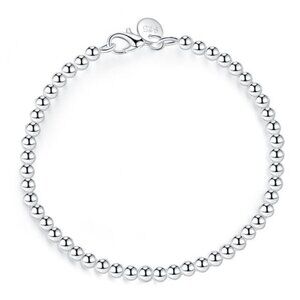 925 Sterling Silver Classic 4MM Round Beads Chain Bracelets for Women Men