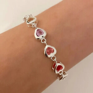 925 Sterling Silver Colorful Gems Heart Charm Bracelet Dainty Heart Bracelet