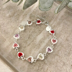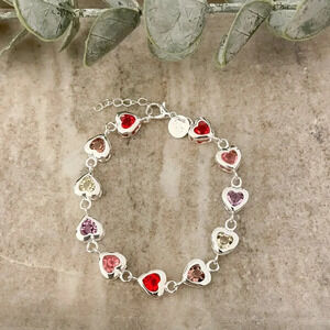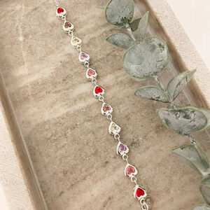 ♥ Beautiful Sterling Silver Colorful Heart Link Bracelet