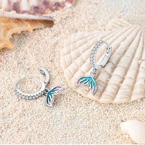 925 Sterling Silver Colorful Mermaid Fishtail Drop Dangle Earrings