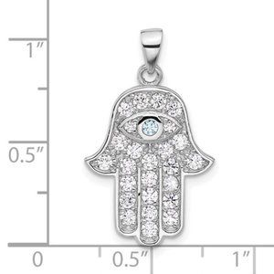 925 Sterling Silver Created White & Blue CZ Hamsa Hand Eye Hand Charm Pendant