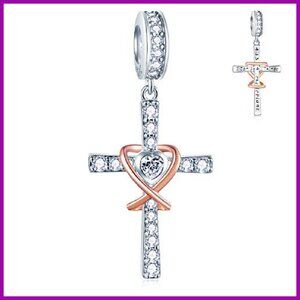 925 Sterling Silver Cross Charm with Cubic Zirconia for Bracelet or Necklace