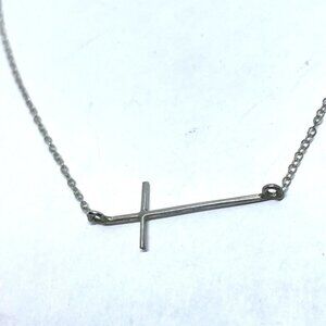 925 Sterling Silver Cross Pendant Chain Necklace Lobster Closure 14.5 Inch