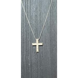 925 Sterling Silver Cross Pendant Necklace 16” Rhinestones Italy Thailand Marked