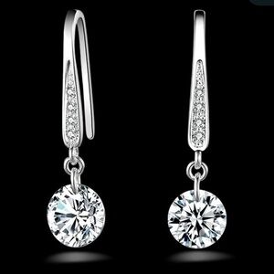 925 Sterling Silver Plated Crystal Hoop Drop Dangle Earrings NWT.