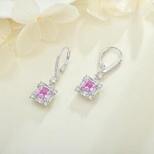 Size&Gemstone: Earrings co-length: 33mm/1.3inches;thickness:10.5mm/0.41inches, square 6*6mm bright cut Created Pink Tourmaline.