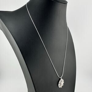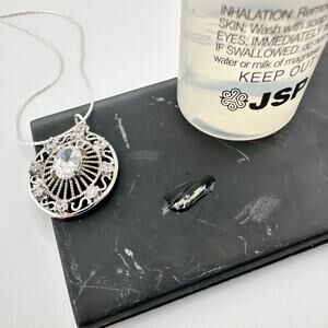 925 Sterling Silver Cubic Zirconia Art Deco Style Ornate Pendant 18" Necklace