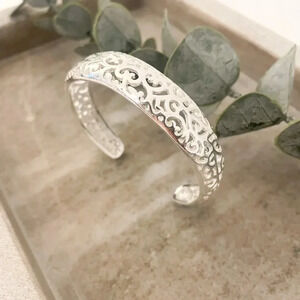 925 Sterling Silver Cuff Bracelet Bangle Bracelet Floral Cutout Chunky Bracelet