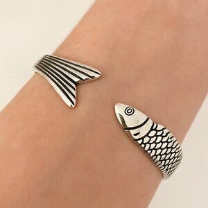 925 Sterling Silver Cuff Bracelet Fish Bracelet Modern Silver Bangle Bracelet