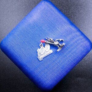 Cute solid 925 sterling silver Walt Disney 100 Year Anniversary attached charm set. The set includes one charm that reads 100 Years of Magic and the second charm is a 3D Mickey Mouse charm featuring red enamel. This Disney charm set will make a wonderful addition for a Disney collector and/or a Mickey Mouse fan.