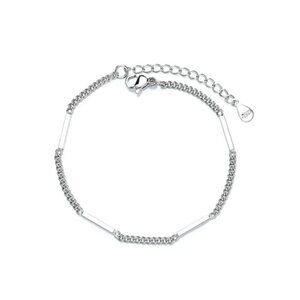 925 Sterling Silver Dainty Bar Link Chain Bracelet Minimalist Bar Thin Bracelet