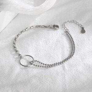 925 Sterling Silver Dainty Beaded Chain Link Circle Bracelet