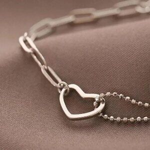 925 Sterling Silver Dainty Heart Bead Chain Link Bracelet