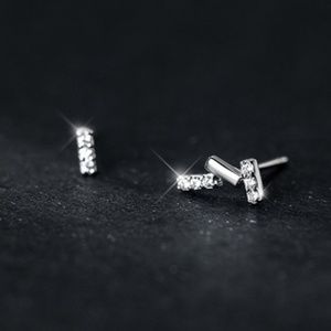 925 Sterling Silver Dainty Mismatched Rhinestone Geometric Stud Earrings