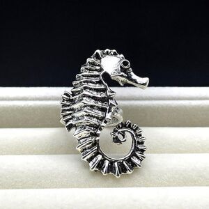 925 Sterling Silver Detailed Seahorse Boho Style Statement Ring Size 8
