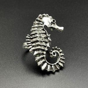 S925 Sterling Silver Plated Detailed Sea Horse Bohemian Style Statement Ring