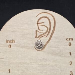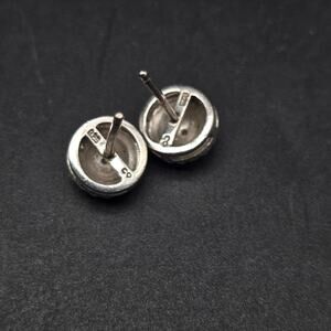 These sterling silver post earrings are for pierced ears and feature tiny diamond chips and measure .25" D
